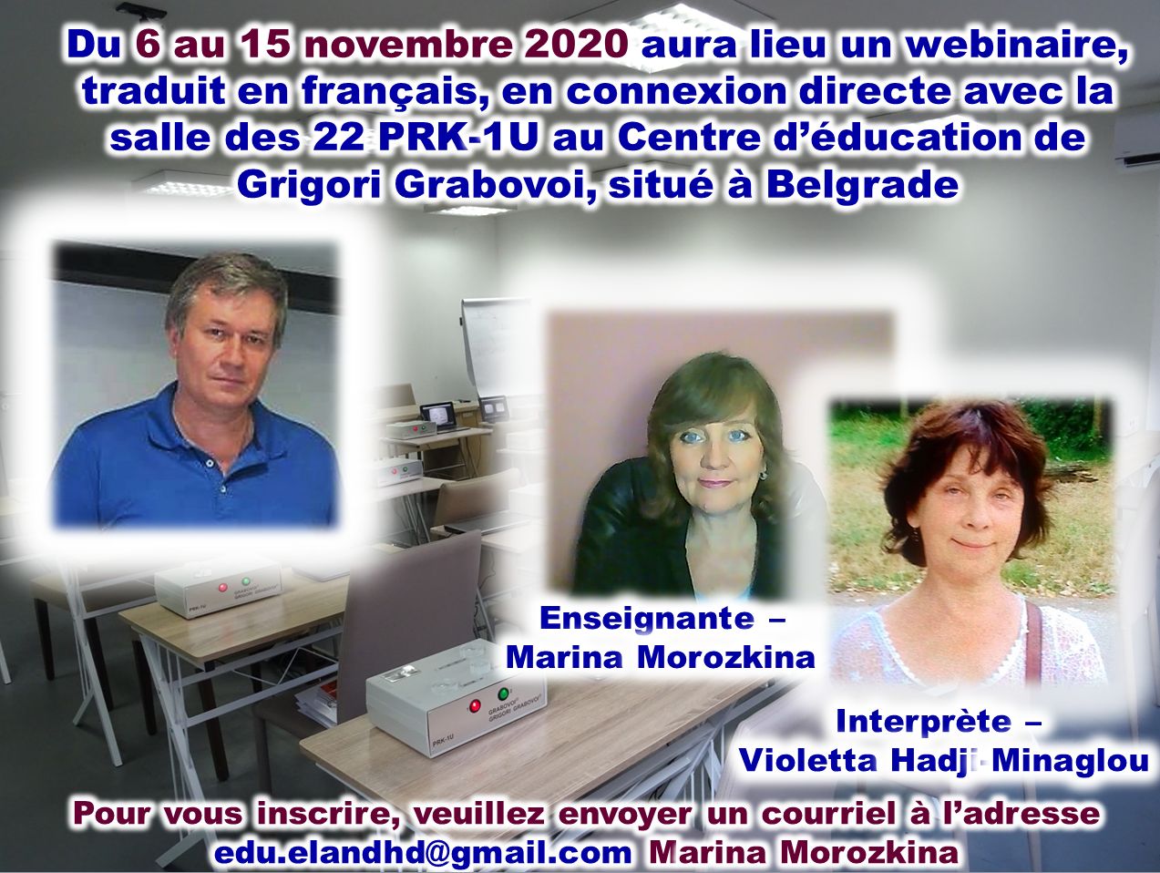 Du 6 au 15 novembre aura lieu un webinaire, traduit en français, en connexion directe avec la salle des 22 PRK-1U au Centre d’éducation de Grigori Grabovoi, situé à Belgrade